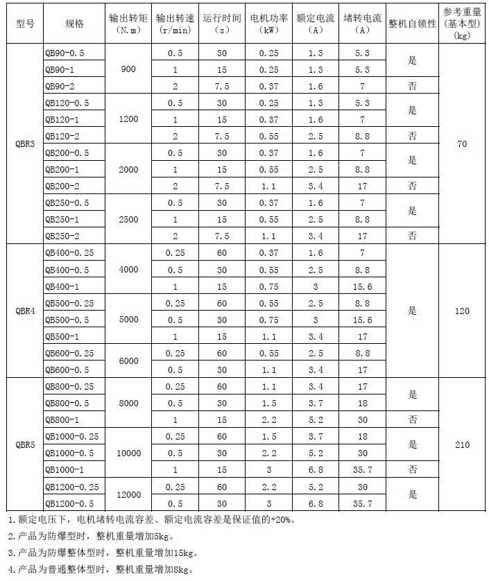 QBR系列技術(shù)參數(shù)表