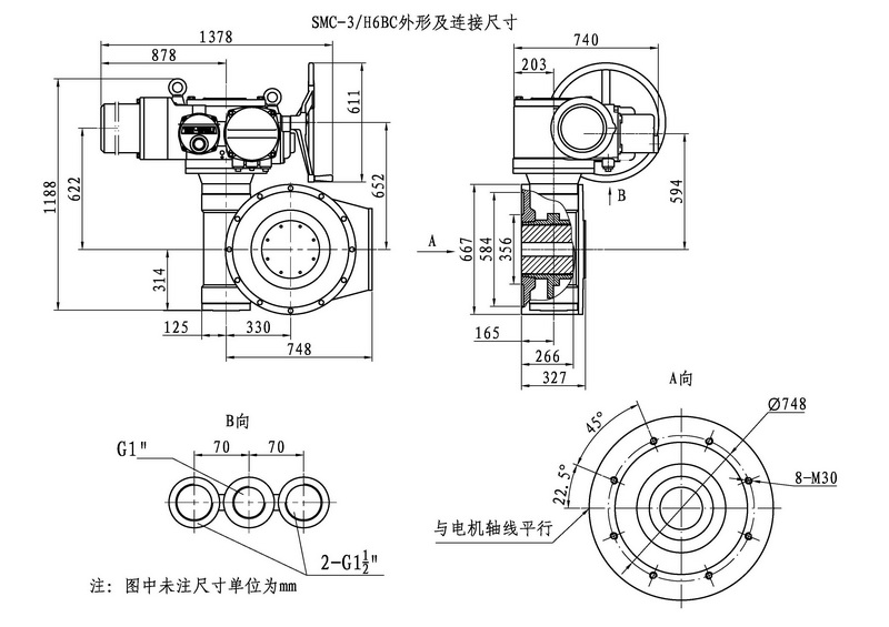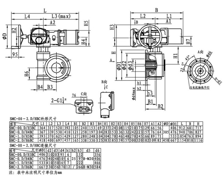 SMC/HBC系列電動裝置是SMC系列多回轉(zhuǎn)電動裝置與HBC蝸輪減速器的組合型式,它適合球閥、蝶閥等部分回轉(zhuǎn)閥門的驅(qū)動控制。SMC/HBC電動裝置具有以下特點:結構設計堅固可靠,產(chǎn)品規(guī)格齊全,驅(qū)動轉(zhuǎn)矩范圍大且動力輸出穩(wěn)定, 具有良好的自鎖性能。 HBC輸出軸結構獨特,裝有與閥桿連接的漸開線花鍵接頭,產(chǎn)品的安裝調(diào)試方便。